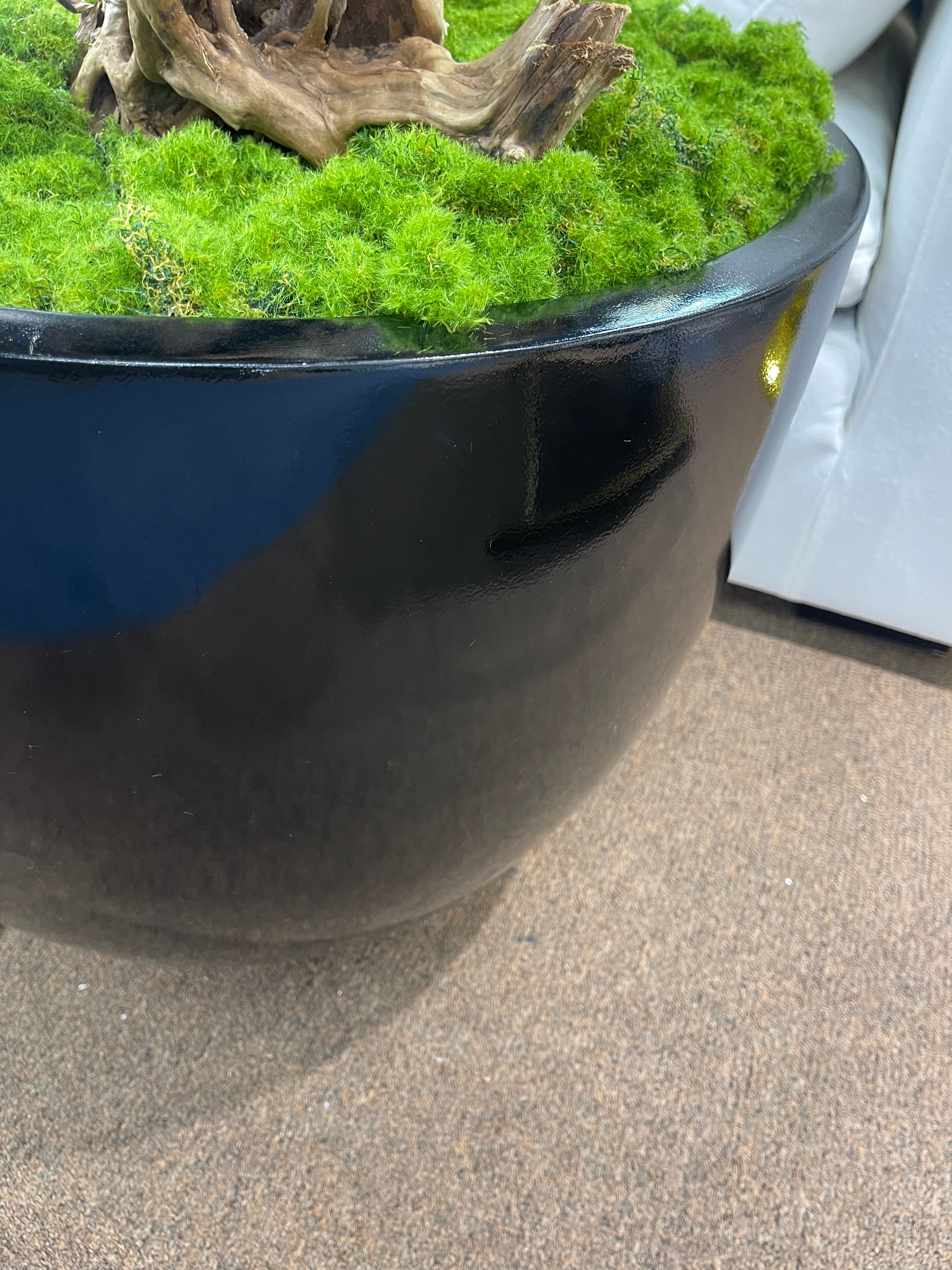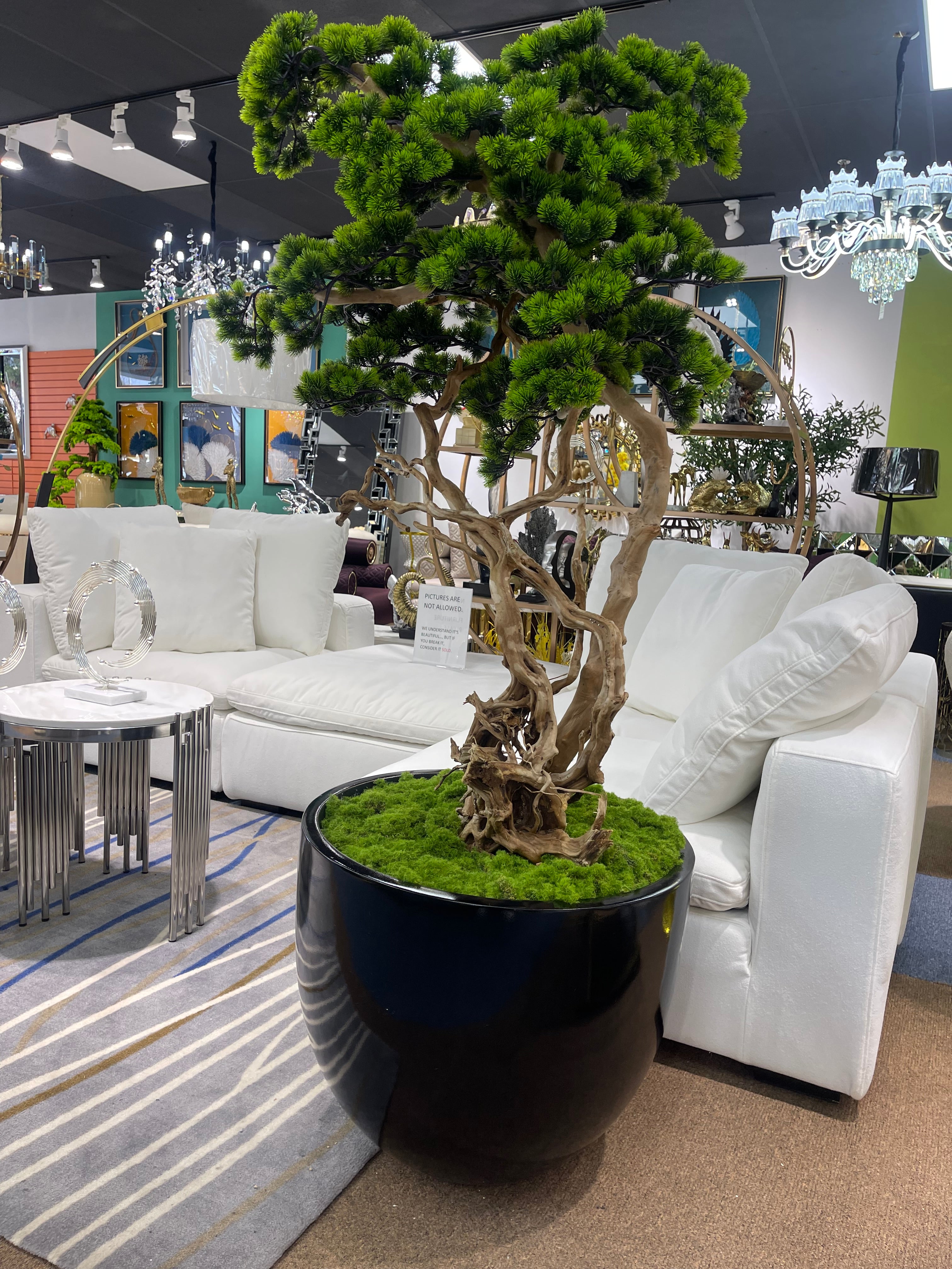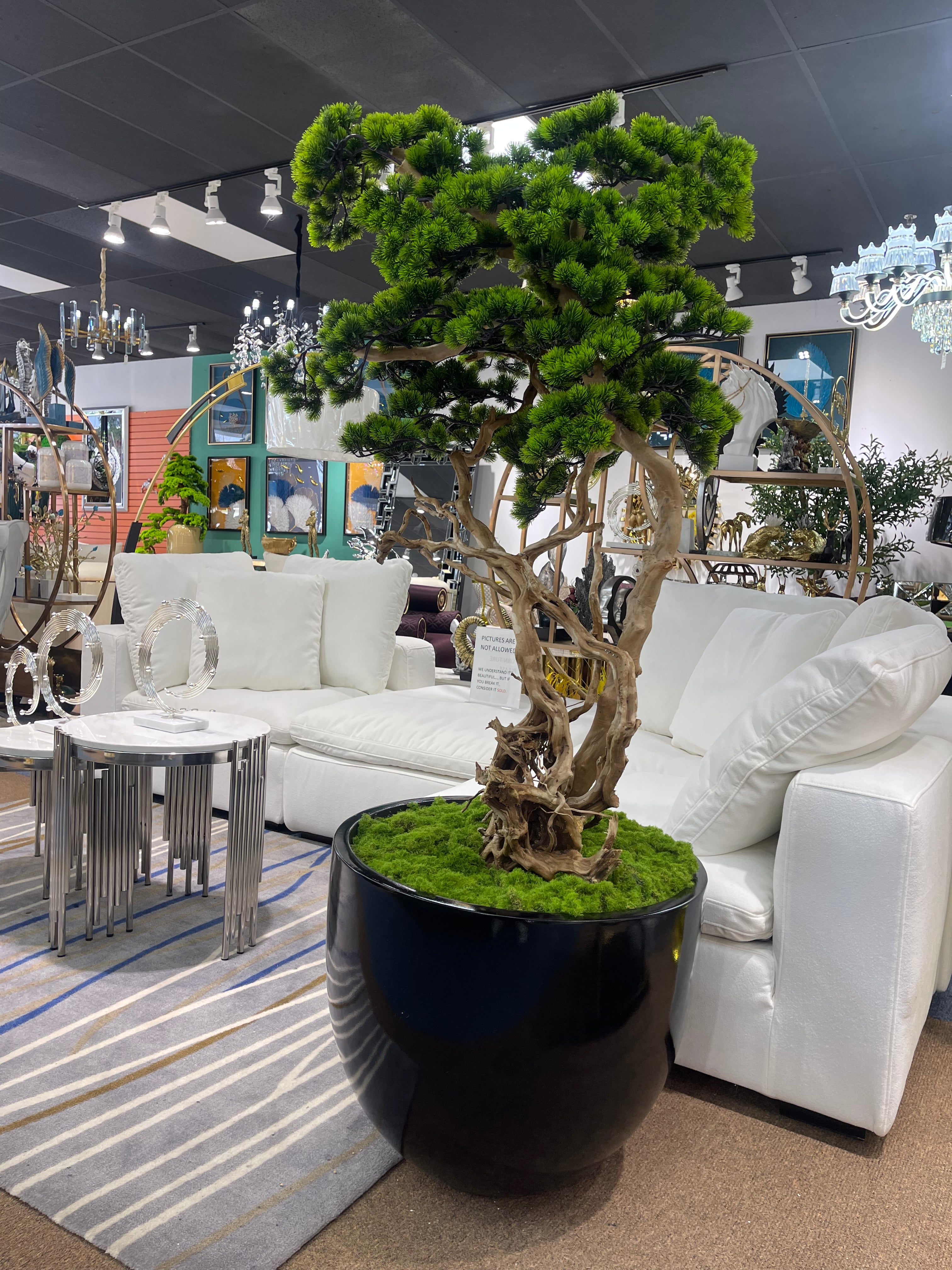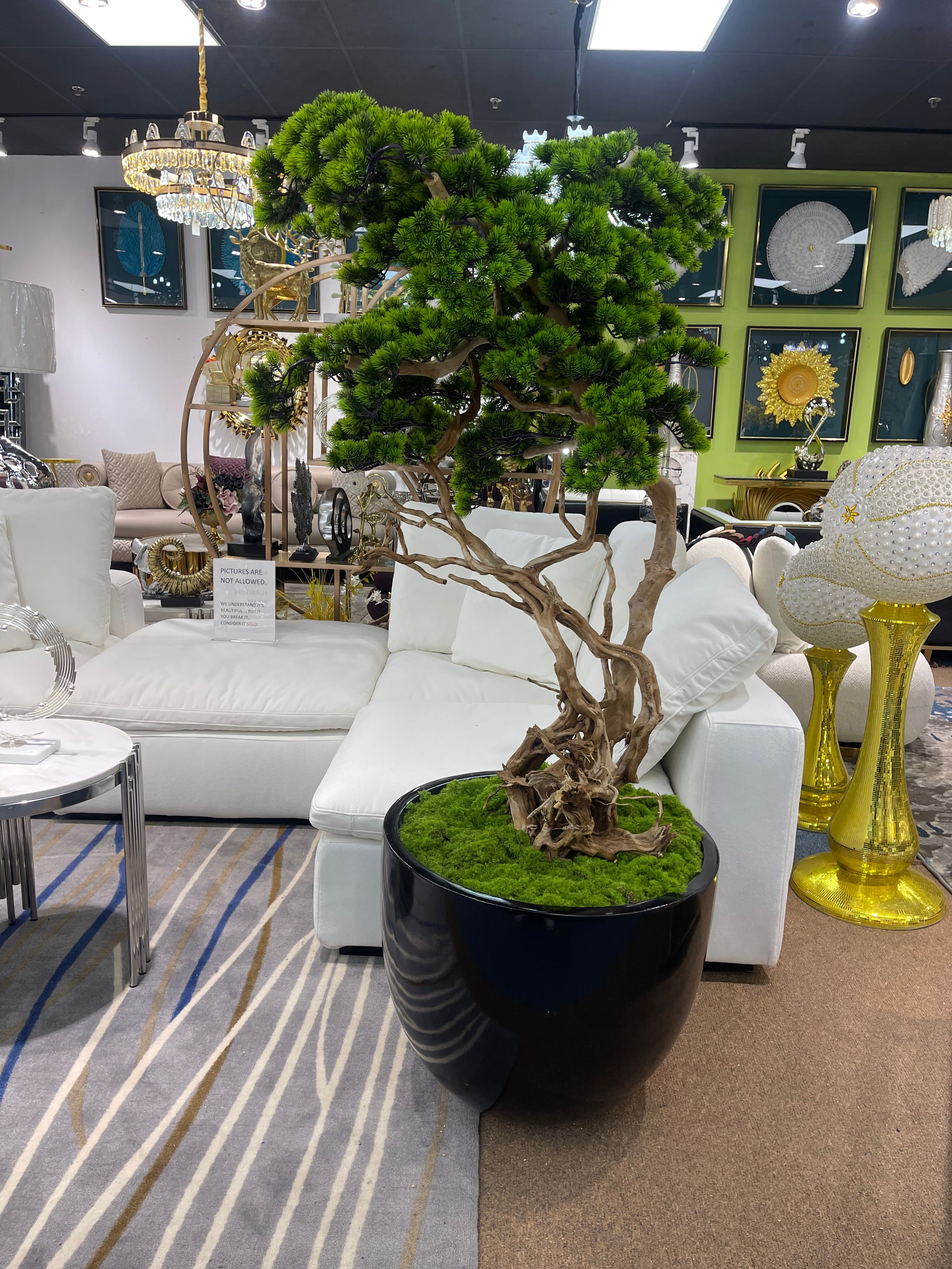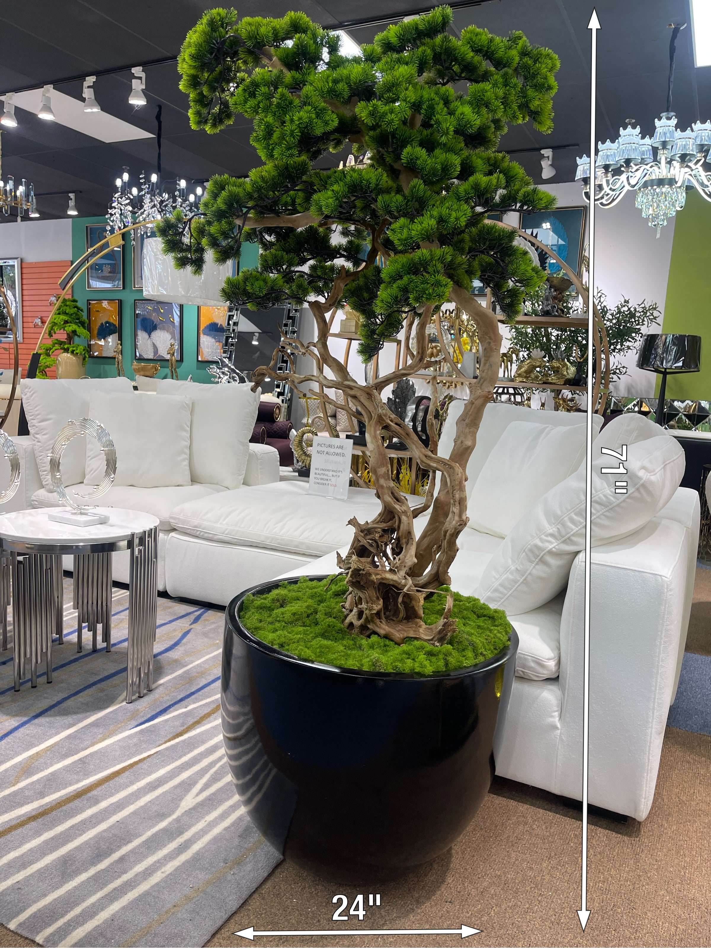 This Artificial Bonsai Tree is housed in a sleek, black polish vase that perfectly complements its contemporary aesthetic. The vase is designed with a modern, minimalistic style, adding sophistication and refinement to the overall design. The glossy black finish provides a stunning contrast to the vibrant greenery of the tree, ensuring it adds depth and elegance to your decor. The vase is sturdy and durable, supporting the bonsai with ease while offering a stylish base that ties the whole look together.