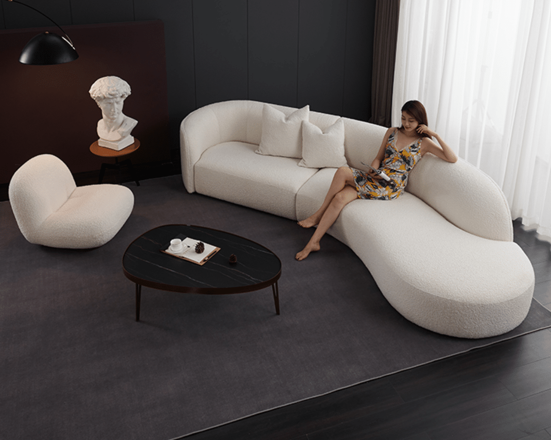 This luxury White Teddy Velvet Sectional Couch is perfect for any home. Its plush design will bring a touch of sophistication and style to any living room. The comfortable foam filling plus the high-quality velvet upholstery will keep your family lounging for hours. Its sectional design allows for extra seating when hosting and is a great high-end addition to your furniture collection. Perfect for all occasions, the White Teddy Velvet Sectional Couch will quickly become a favorite among your family and friends.