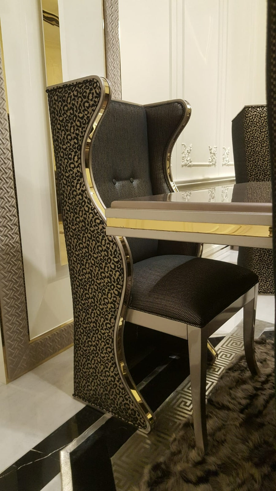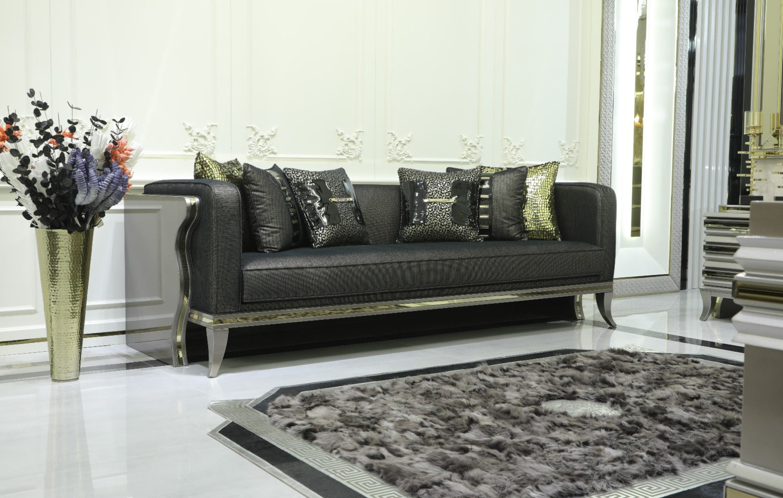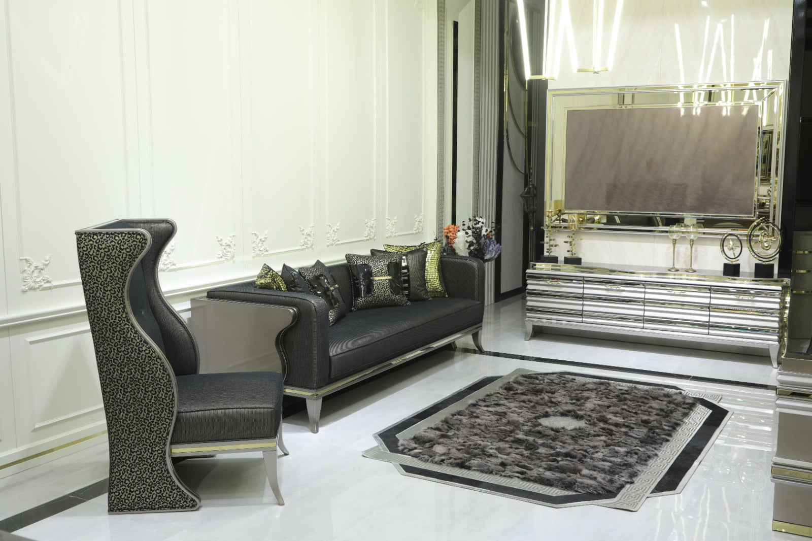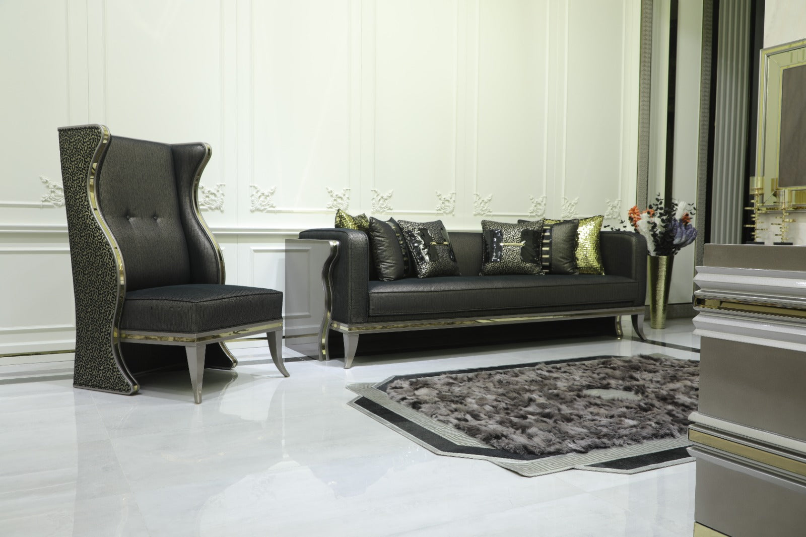 Delight in the opulence of your living space orchestrated by our G-LR Atlantis Living Room Settee. This masterpiece is a synthesis of stainless steel metal with titanium clay, giving it a modern and sleek finish. Crafted from first-class fabric and soft foam rubber, our seating offers unparalleled comfort. Notable features include decorative design cushions, and a cleanable soft fabric that ensures longevity. Emphasizing on the meticulous attention to detail is the well-crafted wood, touched with glossy special effect paint to accentuate its elegant appeal. The Settee is further characterized by a wood design realized through precision CNC techniques. The color, size, and fabric can be configured to your preference. The set embraces 2 inviting sofas, 2 armchairs, 2 stylish end tables, a coffee table, a console, 2 mirrors, a TV stand and wall unit, a dining table, and 6 elegant chairs, available in black with gold trim