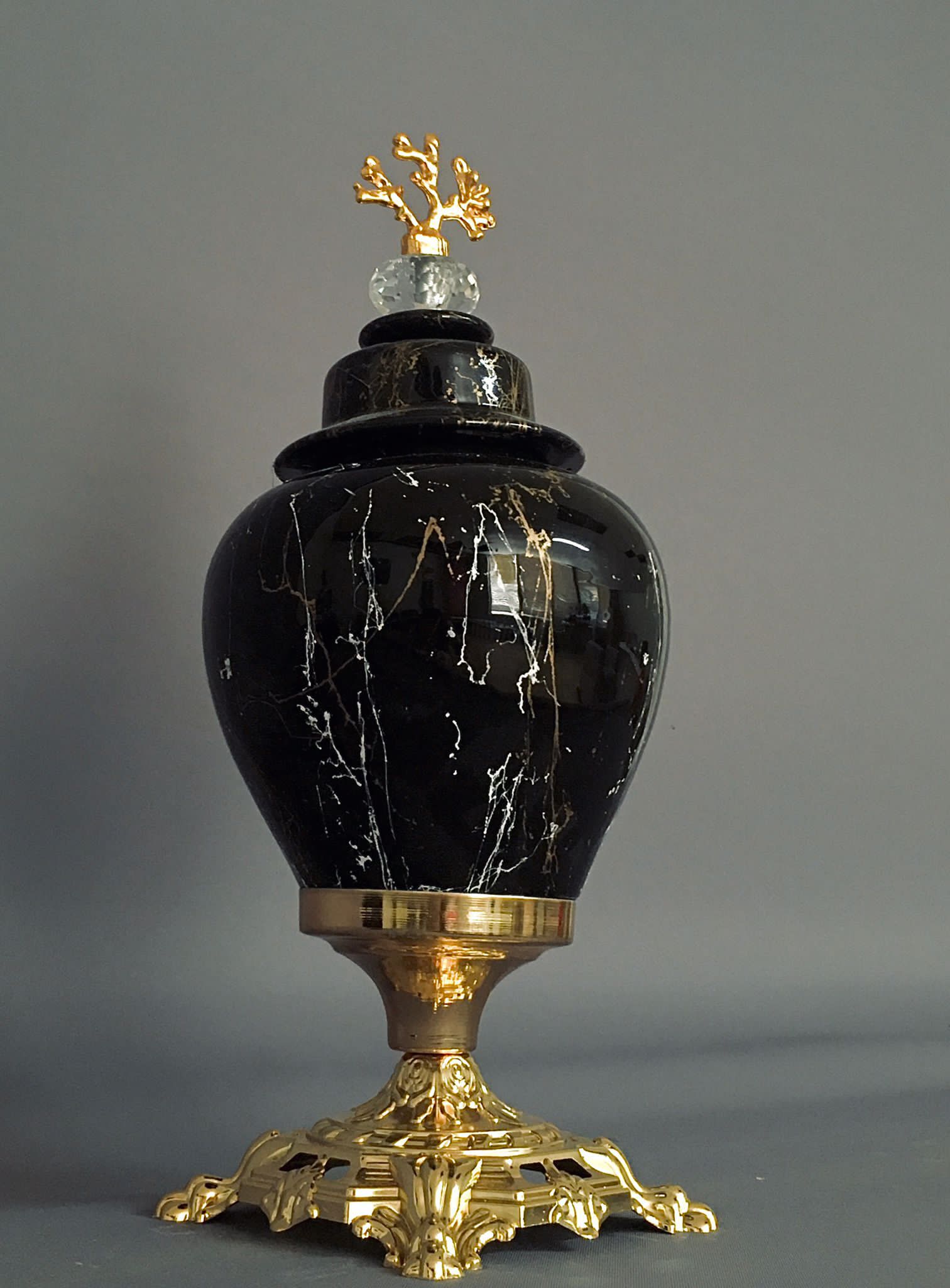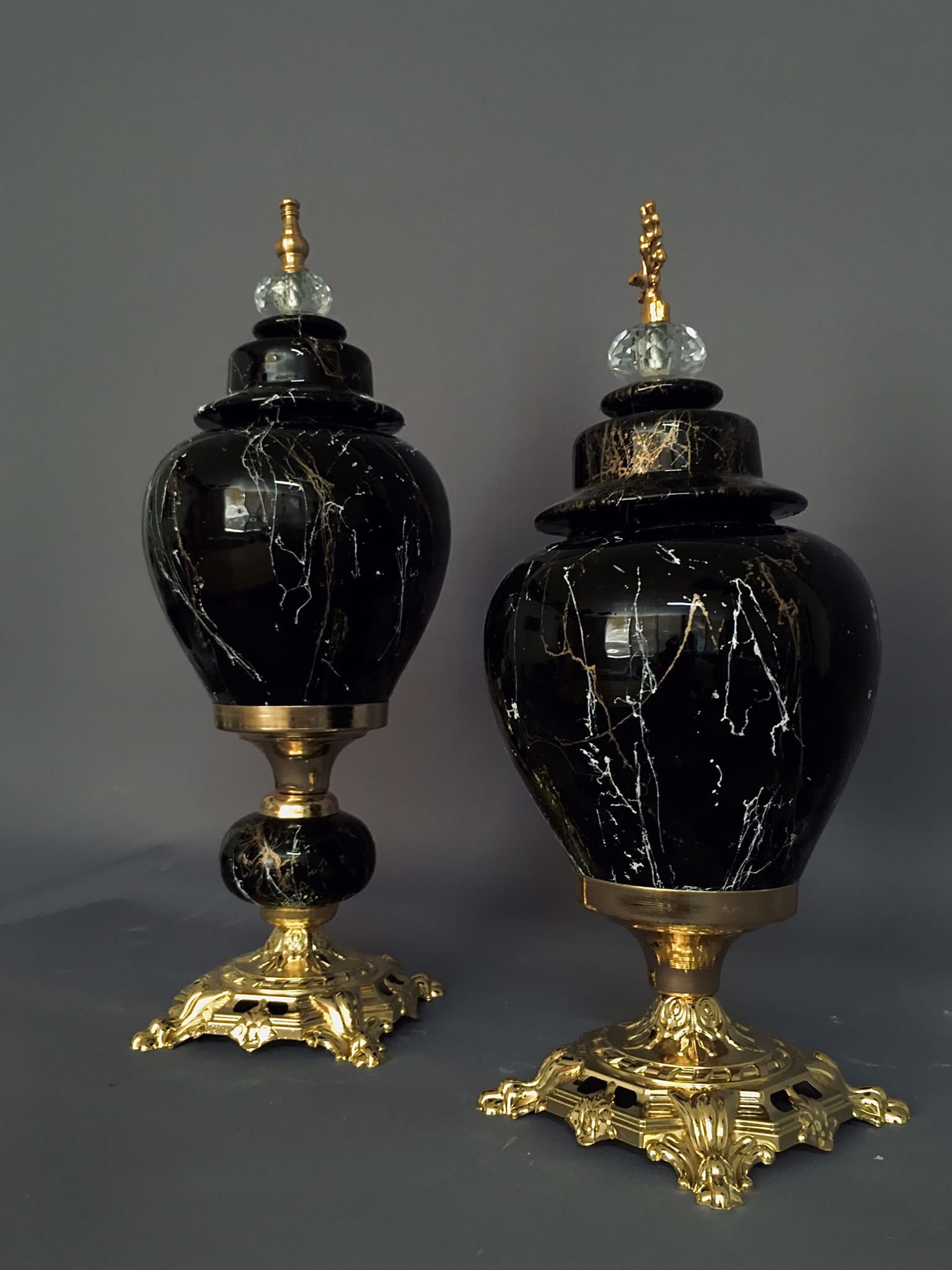 With our G-VJ 2-1 Gold Trim Black Decorative Jar Set, we invite you to elevate your interiors to new heights of elegance. Each piece in our exquisite 2 piece collection is an individual statement of style with Black jars beautifully accentuated by a Gold Trim. These jars are not just a functional addition, but a luxurious enhancement to your home decor. Step into a world of refined luxury with our striking jar set.