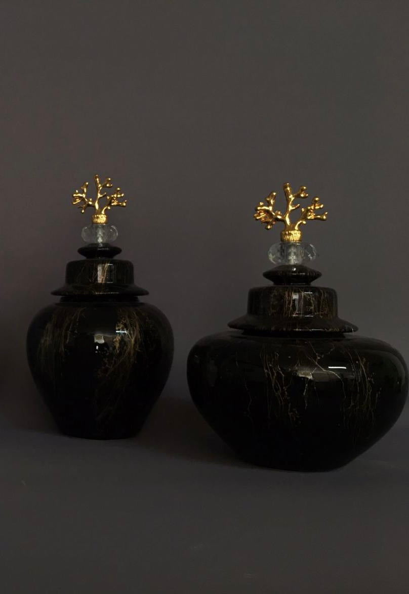 Luxurious G-VJSER04 3-1 Black/Gold Decorative Jar Set