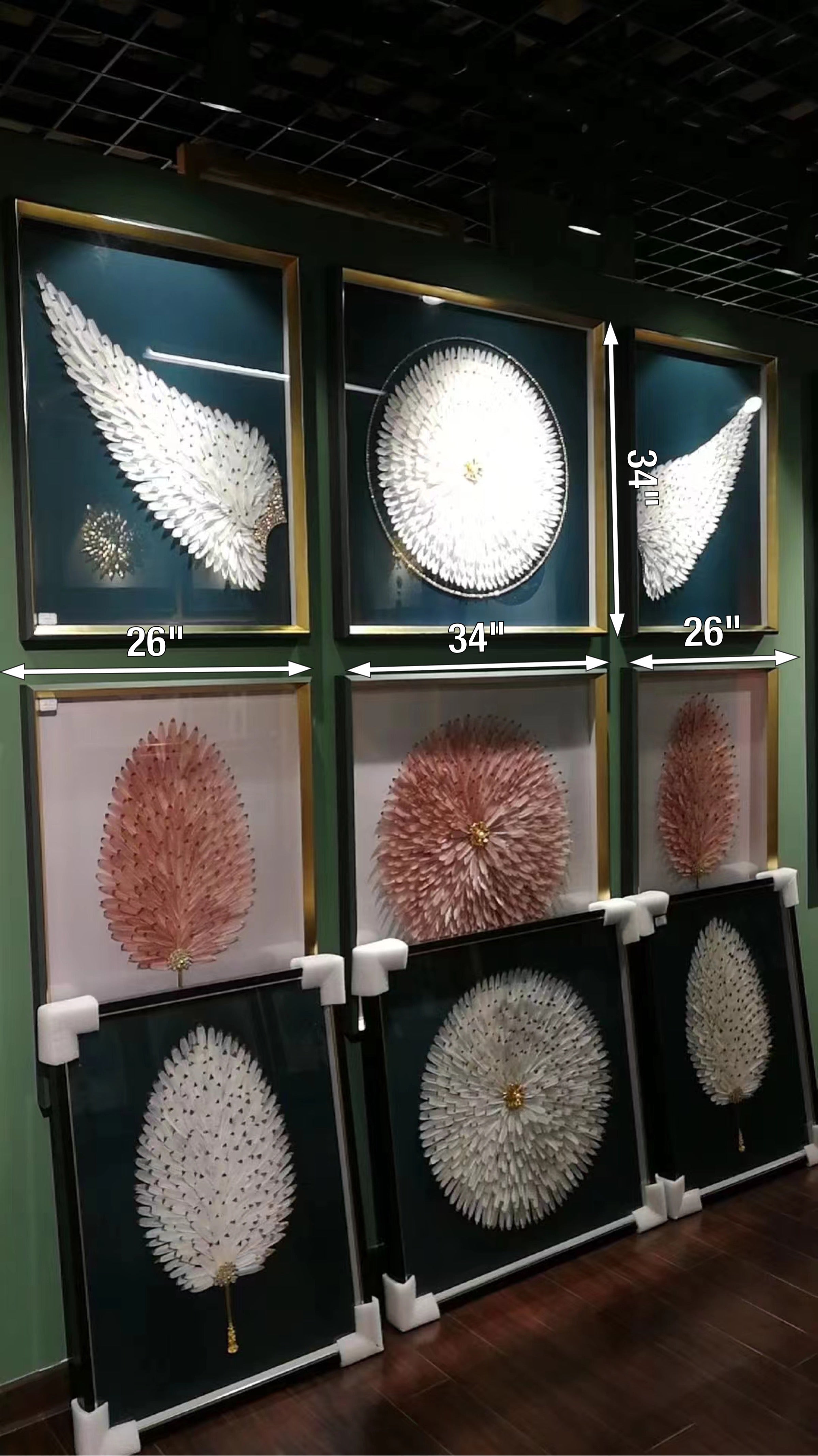 Immerse yourself in the world of opulence with the G-WF 3-1s white Feather Painting. An ethereal white feather, paired with a deep blue feather, set the scene for this expression of artistic brilliance. Set on a glowing layer of resin, the feathers seem almost afloat. Every now and then, the scene is interrupted by the glinting of carefully placed stones and alluring beads. A subtle touch of gold brings a luxurious finish. The entire captivating ensemble is elegantly framed in tempered glass, promising resiliency and longevity. A G-WF 3-1s Feather Painting is not merely a decorative item, but a luxury to indulge in.
