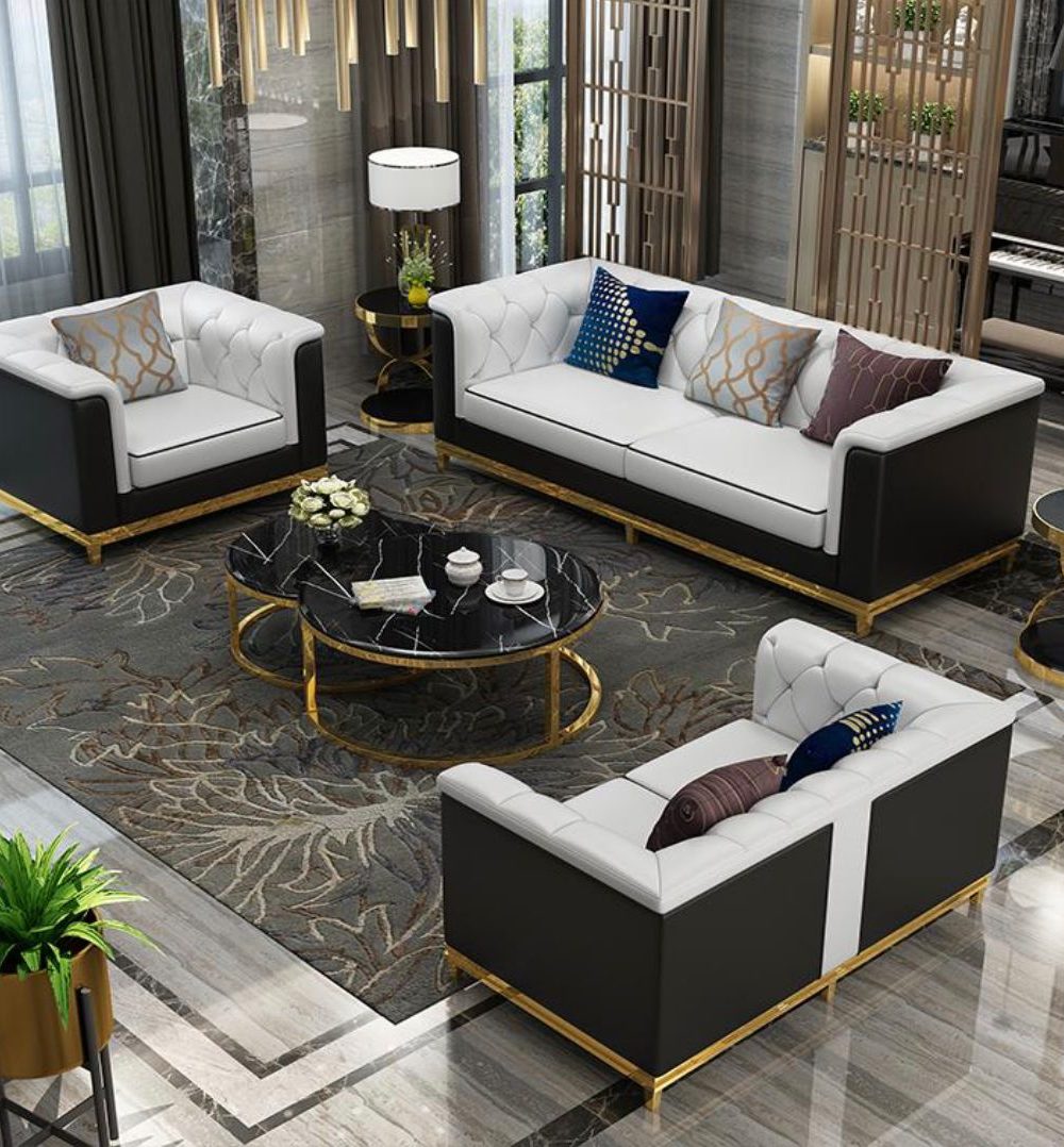Enhance your living room with this sleek Black and White Living Room Set! This modern design is perfect for a contemporary look and provides a great way to spruce up any space. The stylish set includes a sofa in black, two armchairs in white, and a stylish coffee table with a black finish. The comfortable Materials used ensure a long-lasting and enjoyable experience. You will love the added style and comfort that this set brings to any living room. Get this living room set today and start creating the perfect environment for relaxation and entertainment!