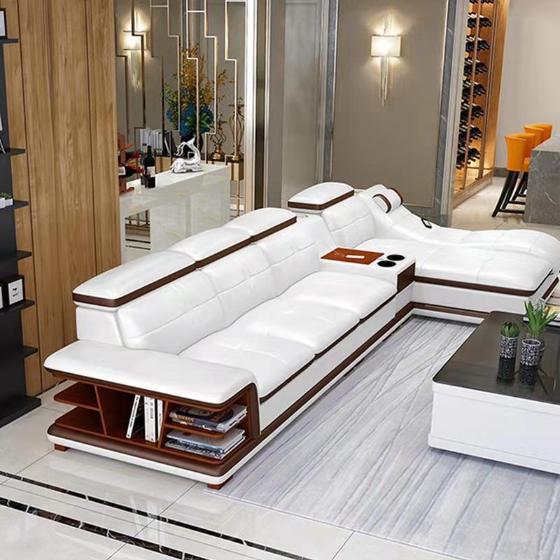 Solidify your status as the ultimate home entertainer with the White Media sectional sofa. Experience unparalleled comfort and unbeatable features, including a built-in Bluetooth speaker and optimal storage. Wrapped in supple leather, this masterpiece exemplifies unmatched opulence. Elevate your lifestyle and indulge in the White Media sectional sofa.