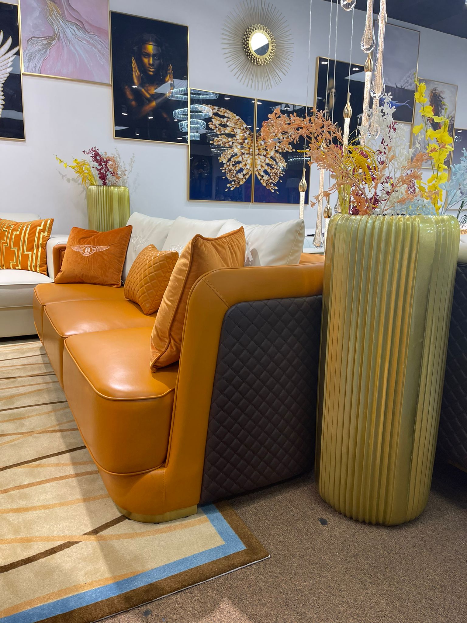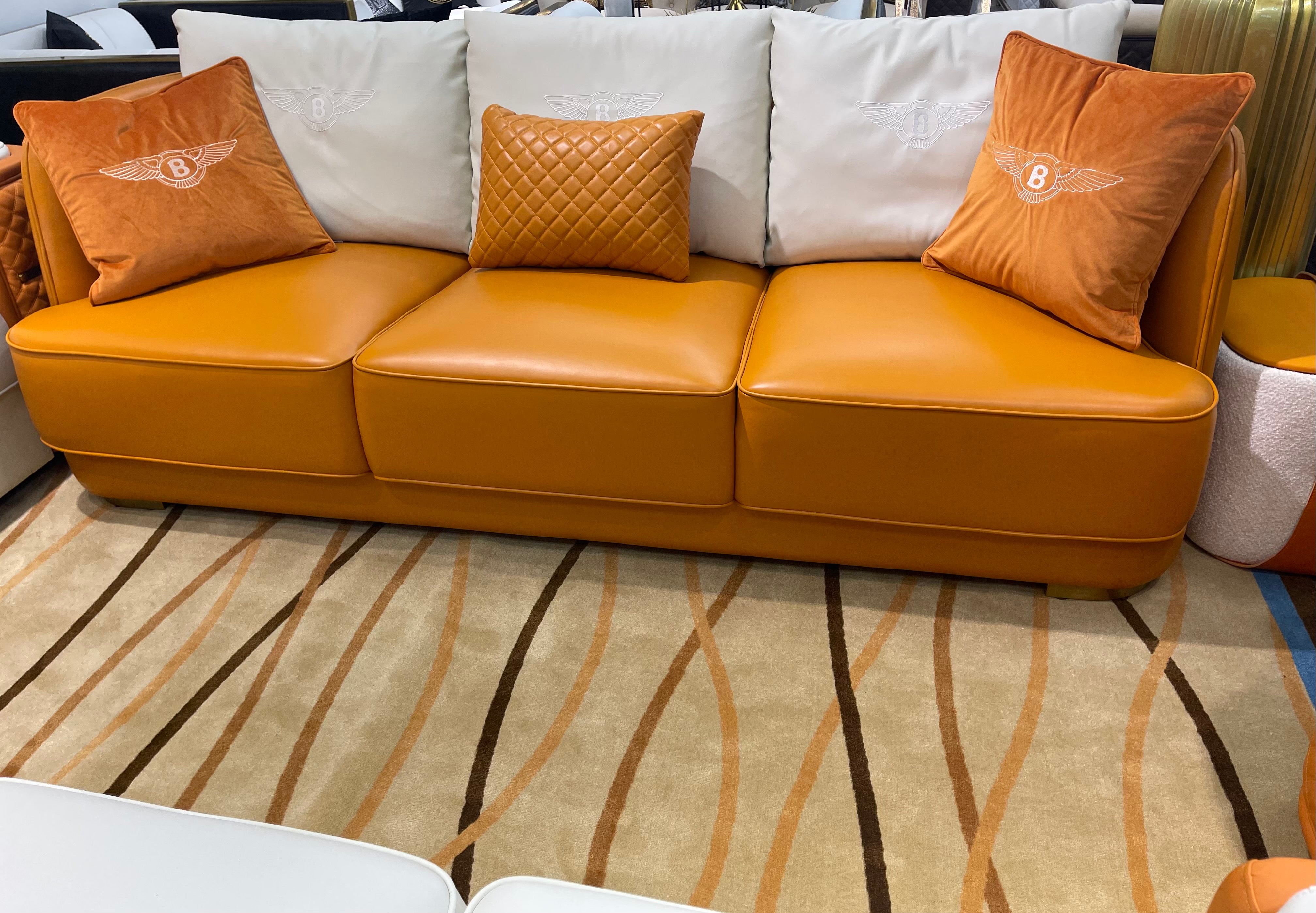 Welcome to the Bentley Living Room Set. This eye-catching set includes a loveseat, and chair, all upholstered in a striking orange and white pattern. Each piece is carefully crafted with premium materials, so you can enjoy superior comfort, quality, and style. Whether it’s a gathering of friends or a movie night for two, the Bentley Living Room Set offers luxurious living room seating that is perfect for any occasion. Up your interior design game today with this gorgeous and lasting set!