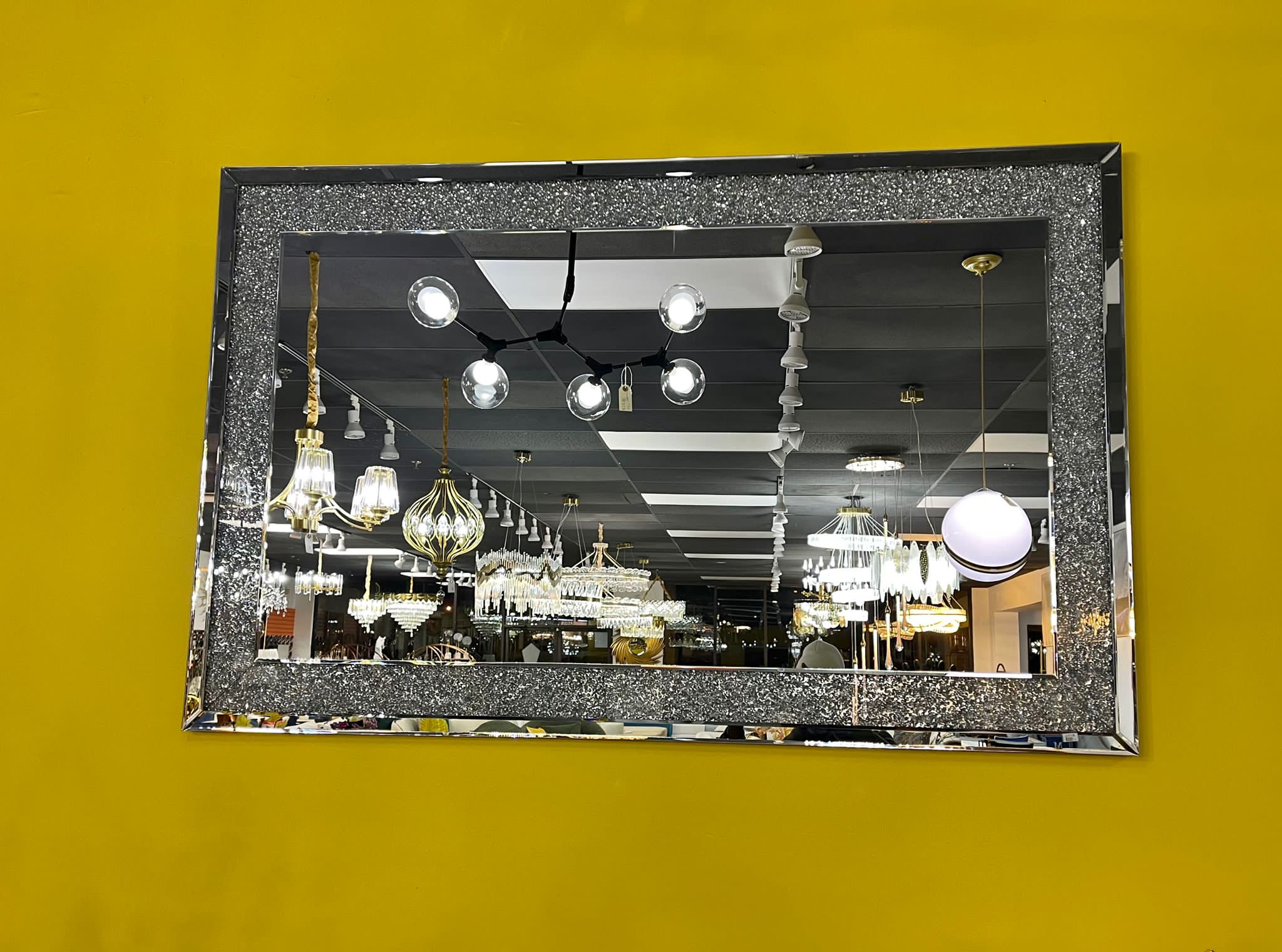Illuminate your living space with our G-M Sparkle Rectangle Mirror! The finely crafted edges of this mirror bring artisan sophistication to your home. The million stones glimpse feature adds a unique charm, making this mirror a thing of beauty in itself. The Sparkle Rectangle mirror finish strikes a perfect balance between vintage allure and modern style. Its dimension: 48” x 32” imposes grandeur and visual appeal. Let your home sparkle with the radiant reflections from our fabulous G-M Sparkle Rectangle Mirror!